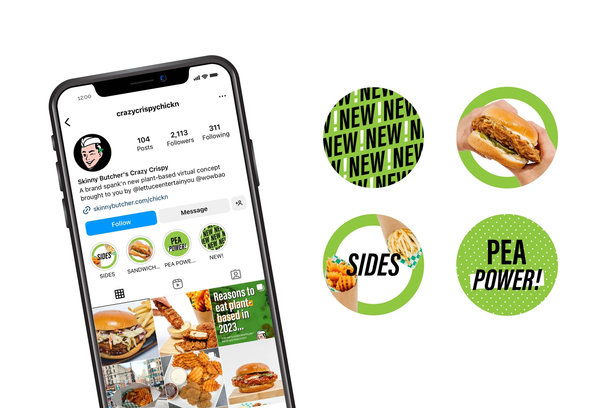 Skinny Butcher's Crazy Crispy Chick'n is a plant-based virtual restaurant brought to you by Wow Bao and Lettuce Entertain You Enterprises. Featured work includes social media posts and promotional ads, designed to establish a cohesive visual identity across all future content. My role was also focused on developing custom highlight icons and ensuring consistency in style, tone, and brand alignment.